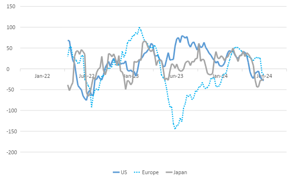 European growth prospects were also compromised by geopolitics. European elections and the subsequent French elections, announced in a seeming fit of pique by French President Macron, concerned the market. The rise of extreme left and right parties as potential leaders of any new government raised market concerns that a new government in France could substantially increase spending and come into direct conflict with the EU and the ECB on fiscal rules.